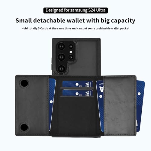 - محفظة رفيعة قابلة للفصل - حافظة سامسونج اس24 الترا الجلدية رفيعة ومناسبة للجيب وسهلة الحمل معك أثناء التنقل. جراب خلفي جلدي لهاتف سامسونج S24 الترا مع حامل بطاقات 5 في 1 يحمل أيضًا ما يصل إلى 5 بطاقات وبعض النقود، حتى تتمكن من الحصول على كل ما تحتاجه في مكان واحد كما أنه قابل للفصل.