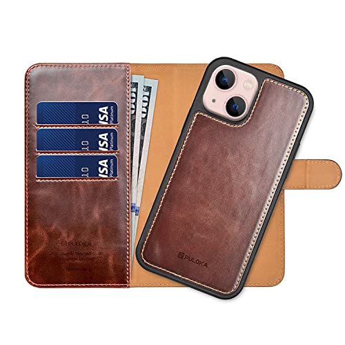 GIGA EG - جراب جلد بولوكا قلاب متوافق مع موبايل ايفون 14 بلس من جيجا اي جي 2 في 1 قابل للفصل حامل كروت - بني