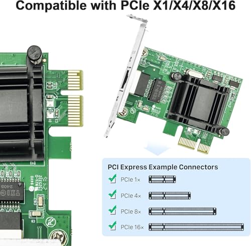 Generic - محول شبكة مكتبي بمنفذ PCIe جيجابت - منفذ ار جيه 45 1 جيجا بايت، بطاقة LAN ايثرنت بي سي اي اكسبرس عالية السرعة، متوافق مع ويندوز ولينكس