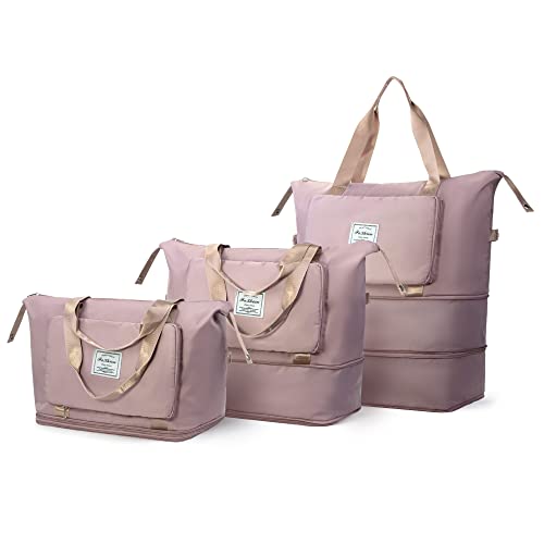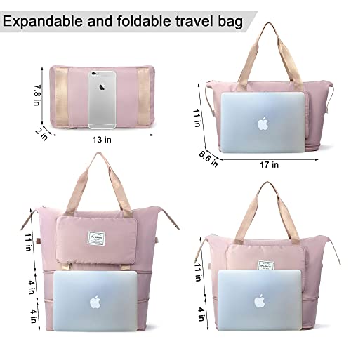 GIGAGO - شنطة توت/دافل لعطلة نهاية الأسبوع للنساء للسفر قابلة للطي وبسعة كبيرة من جيجاجو، محمولة ومقاومة للماء وقابلة للتوسيع للجيم وتحت المقعد والسفر أثناء الليل، بينك, زهري