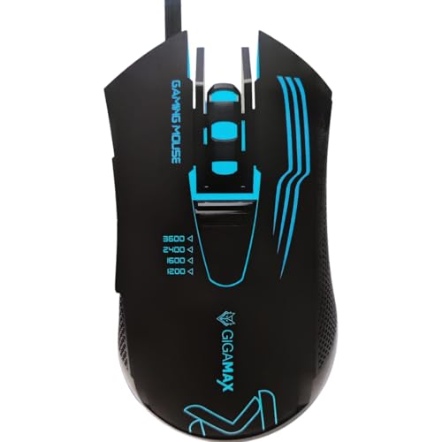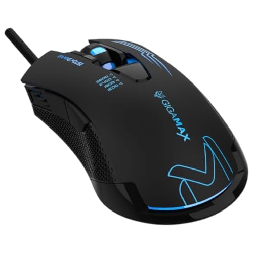 GigaMax - ماوس الألعاب مزود بمستشعر بصري 3200 نقطة لكل بوصة وإضاءة ار جي بي مع 6 أزرار، مريح للغاية بتصميم للألعاب من جيجاماكس، GM-07