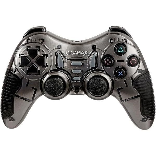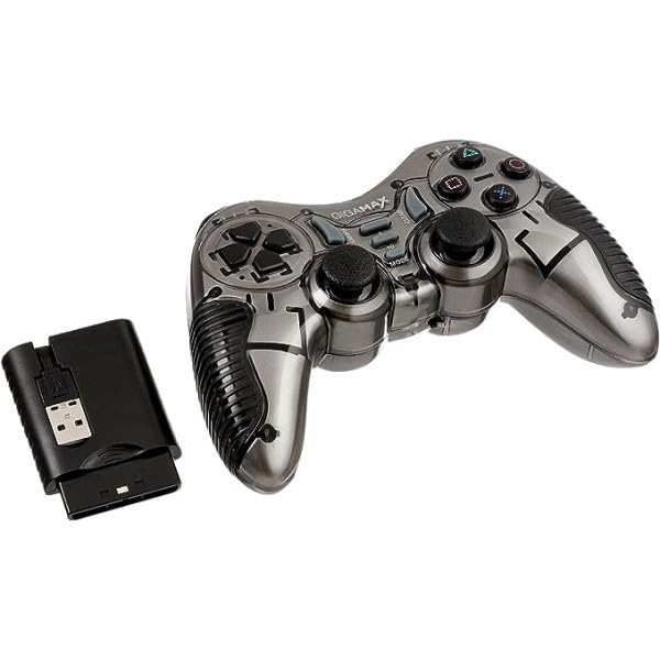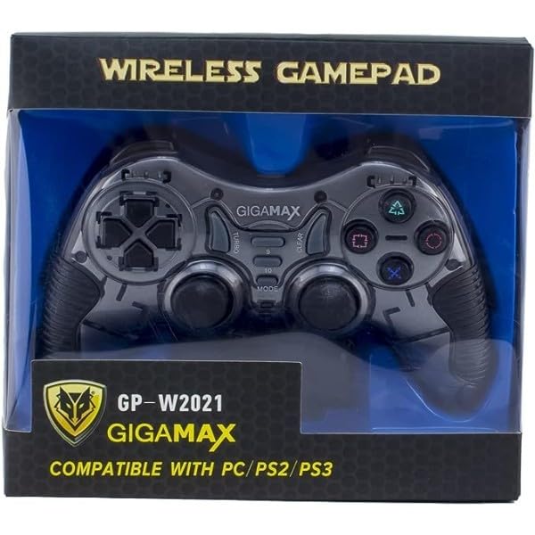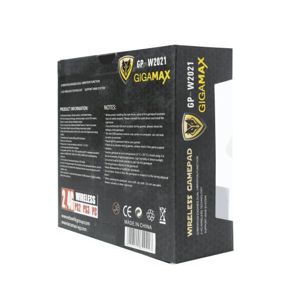 GigaMax - يد تحكم ألعاب فيديو من جيجاماكس موديل جي بي-2021 للديسكتوب، لاسلكية، متوافقة مع الكمبيوتر وبلاي ستيشن 2 و3، مع خاصية الاهتزاز المزدوج، باللون الأسود