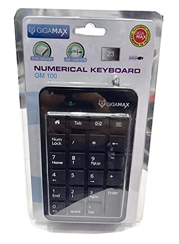 GigaMax - كيبورد أرقام بسلك وواصلة يو اس بي ب 23 مفتاح للكمبيوتر واللابتوب، اسود