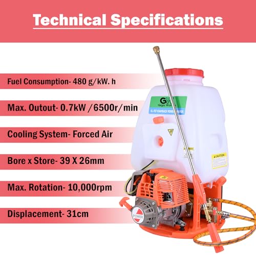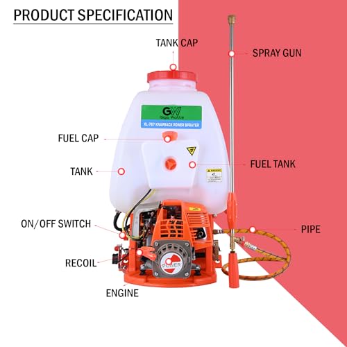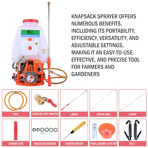 GIGAWATTS - رشاش XLNT 767 مناسب للتعليق على الظهر، بخاخ لرش مبيدات الحشرات في الحقول، مضخة رش تعمل بالضغط لمكافحة الآفات في الحدائق والمزرعة مزودة بموتور من جيجا واتس