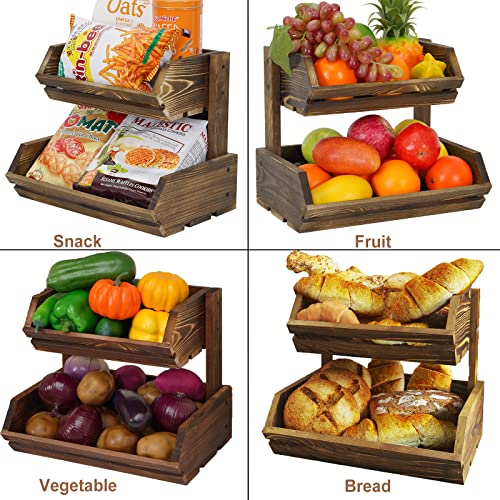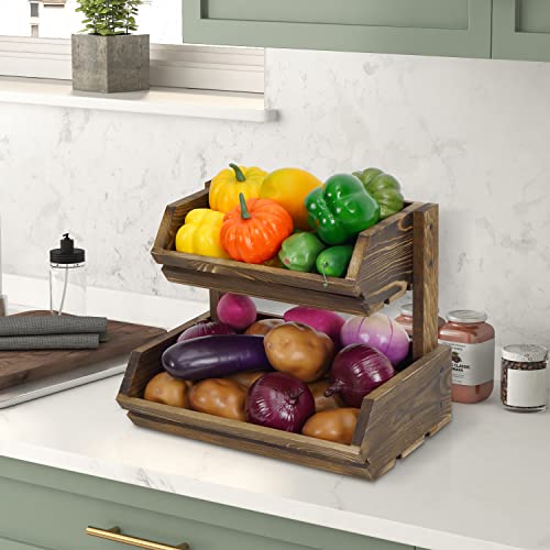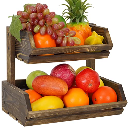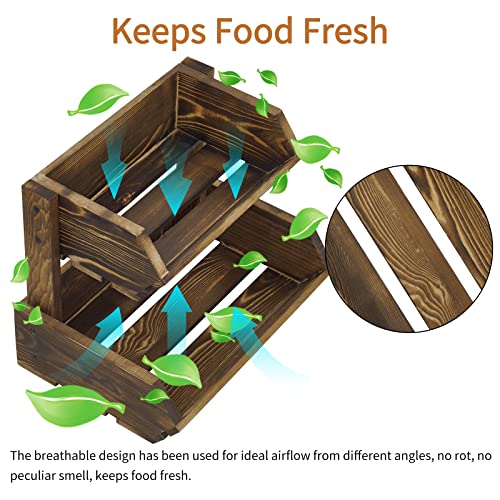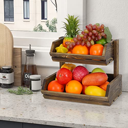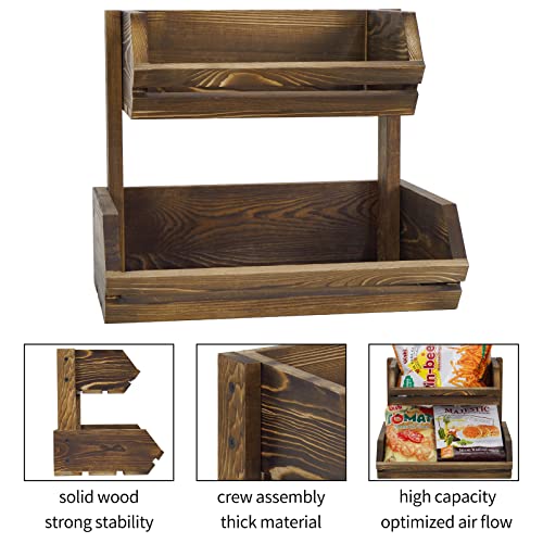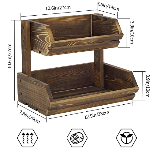 Giikin - حامل فاكهة خشبي بتصميم ريفي ساحر من طبقتين لتخزين الخضروات والخبز للبطاطس والبصل وعرض الوجبات الخفيفة وصينية حامل فاكهة ريفية كبيرة منظمة لطاولة المطبخ من جيكين