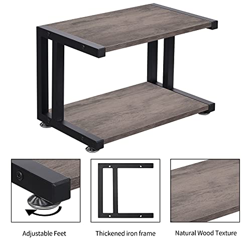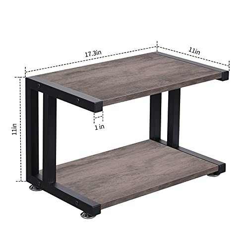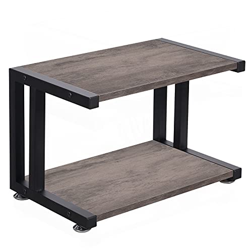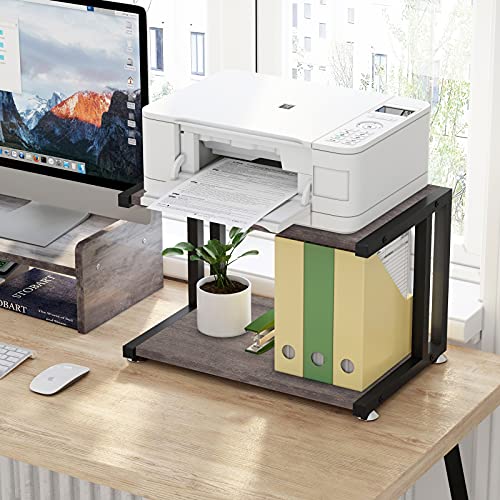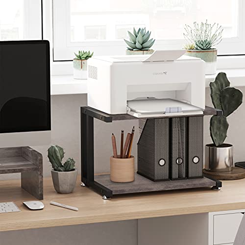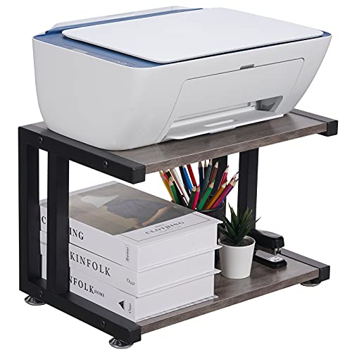 Giikin - جيكين حامل طابعة مع رفوف تخزين بطبقتين سطح المكتب للمنزل والمكتب اقدام قابلة للتعديل مضادة للانزلاق رف منظم مكتب متعدد الاغراض لالة الفاكس والماسح الضوئي واللوازم المكتبية رمادي ريفي خشب