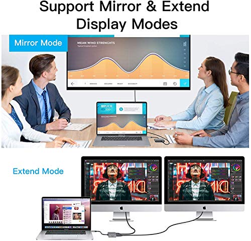 - 【مزامنة فيديو بتأثير ثلاثي الأبعاد حيوي】قم بعكس شاشتك أو تمديدها باستخدام منفذ HDMI وVGA الخاص بمحول USB C، وبث فيديو 4K UHD أو FHD 1080p إلى تلفزيون عالي الدقة أو الشاشات أو أجهزة العرض للحصول على وليمة بصرية تشبه السينما.
