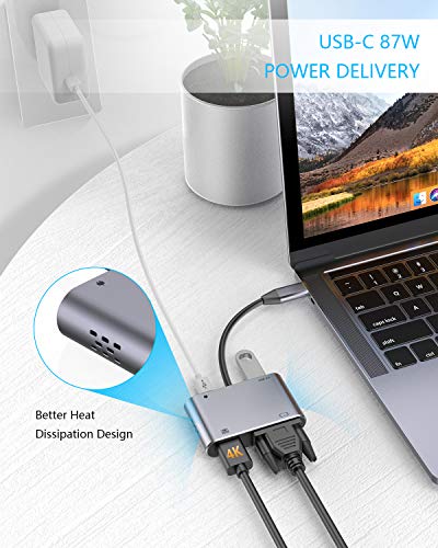 GIKERSY - محول USB C الى VGA موزع USB-C HDMI ثاندربولت 3 متوافق مع ماك بوك برو - اير - ايباد 2018-2020 - ديل XPS - نينتندو سويتش