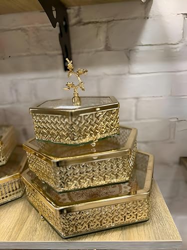 Generic - طبق حلوى مذهب - ترتيب فاخر من ثلاث قطع من المعدن والزجاج، مثالي لتنظيم الحلوى ورفع أي مساحة مع توهج ذهبي رقيق أثناء التجمعات.