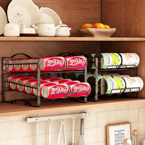 GILLAS - منظم علب الصودا من جيلاس، رف كبير قابل للتكديس لتخزين المشروبات الغازية في الثلاجة وخزائن المطبخ وعلى سطح الطاولة، أسود، قطعتين