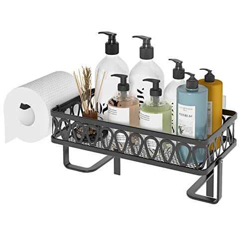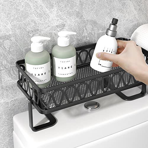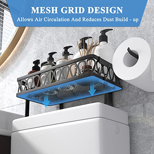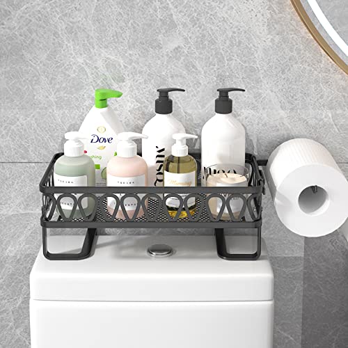GILLAS - رف تخزين فوق التواليت للحمام، منظم تخزين للحمام مع حامل ورق المرحاض، موفر للمساحة، لون أسود من جيلاس