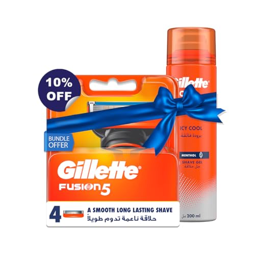 Gillette - مجموعة جيليت لـ4 أشهر - 4 عبوات إعادة تعبئة، 5 شفرات + جل حلاقة