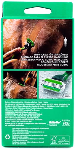 Gillette - ماكينة حلاقة للجسم للرجال من جيليت، ماكينة حلاقة للجسم + 1 شفرة حلاقة ذات شفرة ثلاثية، أخضر