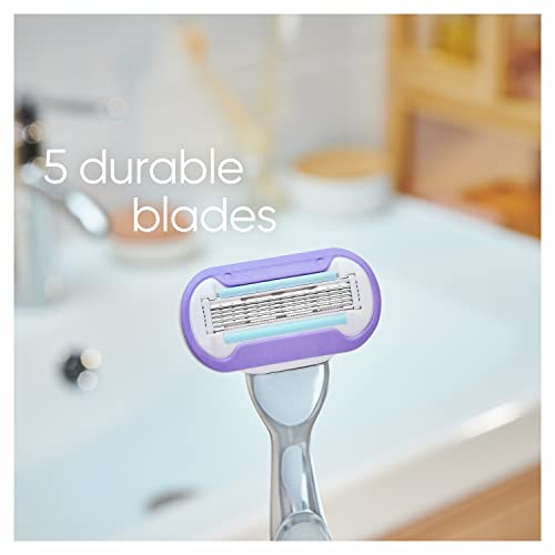- 5 شفرات للحصول على نعومة تدوم طويلًا: تتمتع ماكينات الحلاقة للنساء بخمس شفرات لتمنحك حلاقة فائقة النعومة تدوم طويلا