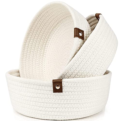 GILLY BILLY - صندوق صغير مصنوع من الجوت الطبيعي بنسبة 100% من جيلي بيلي، سلة دائرية بلون بيج، سلة بنية لغرفة الأطفال وغرفة المعيشة او الرسم والفواكه والمطبخ والمكتب والأرفف (أبيض)، 3 قطع