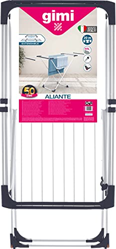 Gimi - منشر أرضي لتجفيف الملابس من جيمي قابل للتمديد مصنوع من الفولاذ والألومنيوم – أزرق / أبيض بطول 20 م