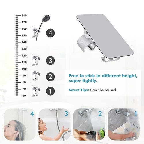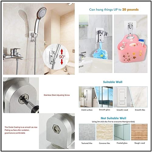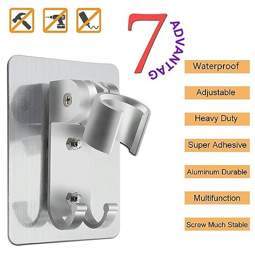 GINETARR - حامل رأس دش قابل للتعديل، حامل يثبت على الحائط مع خطافي تعليق مصنوع من ألومنيوم متين ومزود بلاصق قوي للحمام، شرائط تعليق لا تسبب أي ضرر أو تلف، ألومنيوم مستخدم في صناعة الطيران والفضاء من جينيتار