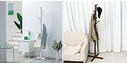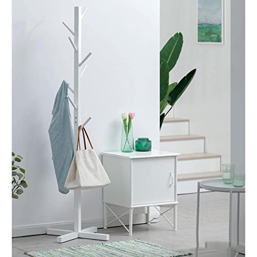 ginoya brothers - حامل معاطف متين بخطافات من جينيا براذرز معطف خشبي قائم بذاته شماعات للمعاطف مناسب للمدخل سهل التجميع بقاعدة صلبة لتعليق القبعات والملابس أبيض 92-1