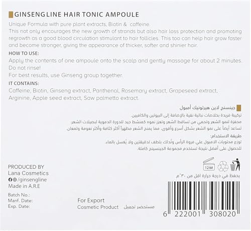 Generic - أمبولات جينسنج لاين للجنسين للشعر المتساقط 10 مل لتقوية ونمو الشعر مع خلاصة الجينسنج والبيوتين والكافيين خالي من العطر