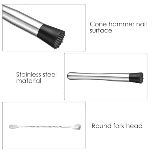 GIONAR - جيونار خليط كوكتيل من الستانلس ستيل مع ملعقة خلط واحدة، مجموعة شيكر الكوكتيل، مجموعة ادوات البار، مجموعة الموهيتو، مجموعة صنع الكوكتيل لصنع موهيتو وشاي الحليب والقهوة ومشروبات الفاكهة