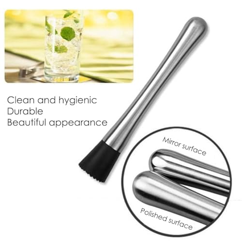 - تصميم رأس نايلون واقي: تتميز أدوات خلط الكوكتيل برأس نايلون مخدد مصمم خصيصًا، مما يوفر تأثير سحق قوي دون إتلاف الأواني الزجاجية. يمكنك طحن الفواكه والنعناع والتوابل بسهولة، مما يعزز مظهر نكهة الكوكتيلات الخاصة بك.