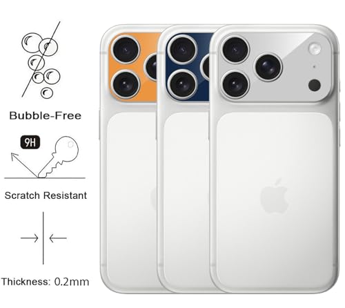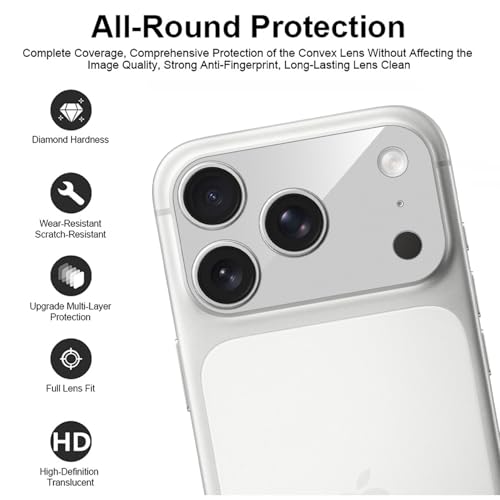 GIOPUEY - جيوبوي غشاء كاميرا لموبايل ايفون 17 برو ماكس، واقي عدسة منصة كاميرا، زجاج مقسى، حماية الكاميرا - قطعتين فضي