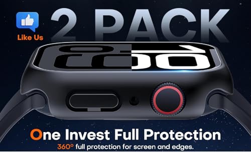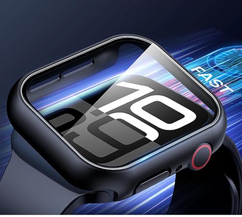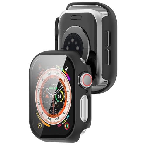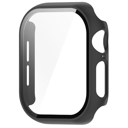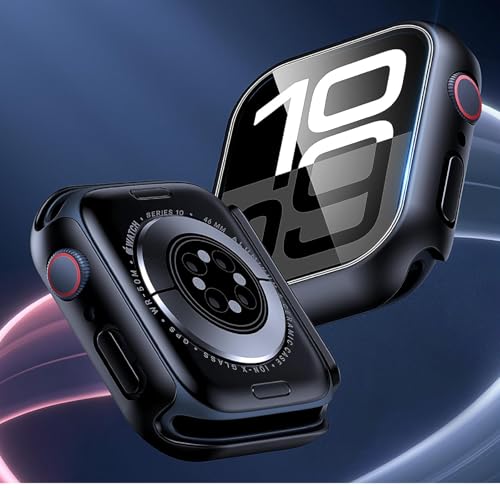 GIOPUEY - شاشة حماية زجاجية وإطار من البلاستيك الصلب، جراب بحماية شاملة 360 درجة متوافق مع ساعة آبل 11 46 ملم 2025 من جيوبوي، عبوة من قطعتين- أسود وأسود