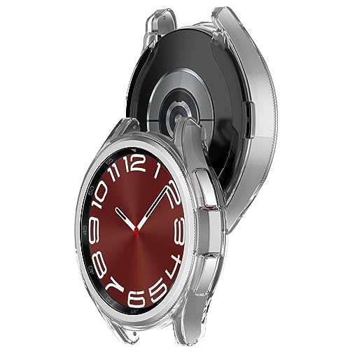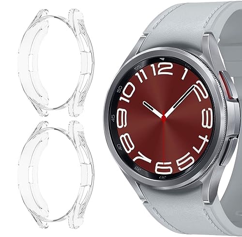 GIOPUEY - [عبوة من 2 جراب متوافق مع ساعة سامسونج جالاكسي 6 كلاسيك 47 ملم، بولي يوريثين حراري ناعم، مقاوم للصدمات، غطاء ساعة سامسونج جالاكسي 6 كلاسيك 47 ملم من جيوبوي - شفاف + واضح