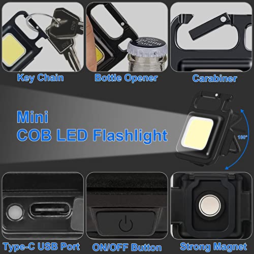GIPTIME - مصباح يدوي LED صغير من قطعتين، مصباح يدوي سي او بي بسلسلة مفاتيح، مصباح جيب محمول قابل لاعادة الشحن 1000 لومن، 4 اوضاع اضاءة مع قوس قابل للطي، فتاحة زجاجات وقاعدة مغناطيسية للتخييم
