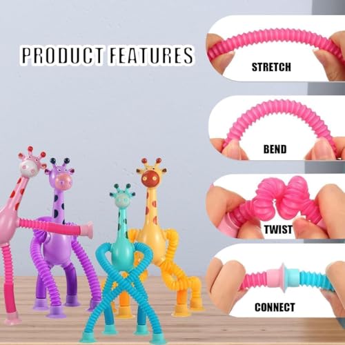 Generic - ألعاب على شكل زرافة بتصميم تلسكوبي ومزودة بقاعدة لاصقة وإضاءة ليد، العاب أنبوبة متغيرة الشكل، ألعاب بوب حسية للبنات والأولاد، مجموعة من 4 قطع