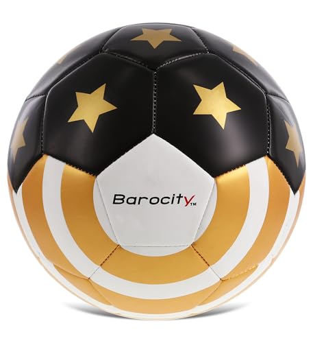 - الاستخدام المثالي لكرة القدم بتصميم علم الولايات المتحدة – المقاس 5: استمتع بتدريبات كرة القدم مع كرة باروسيتي المميزة بحجم 5، بتصميمها اللافت باللونين الذهبي والأسود. بفضل الوزن المتوسط لكرة المباريات الرسمية والتحليق الرائع للكرة، يمكنك تسجيل الأهداف بسهولة أثناء اللعب في الداخل أو في الهواء الطلق. تتميز ببطانة عالية الجودة مناسبة لكل من المباريات الرسمية والتدريبات. استمتع بالارتداد والنعومة وتحكّم بمسار ركلاتك مع كرة القدم المنحنية.
