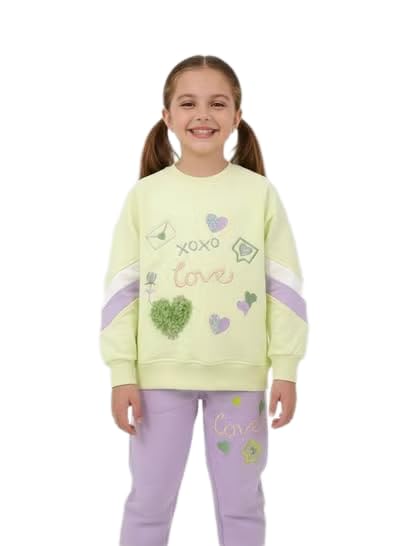 Generic - سويت شيرت وجوغر من فليس قطني 100% وثقيل، بلوزة دافئة بتطريز قلب، خامة مقاومة للتوبر وبهتان اللون، طقم متناسق عملي وأنيق.، 2 قطعة