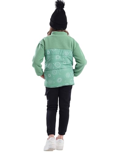 Generic - طقم ملابس للبنات 3 قطع، جاكيت بسحاب مع بنطلون، تصميم دوائر، وردي وأخضر، للأعمار من 5 إلى 10 سنوات
