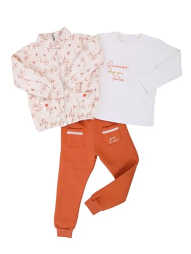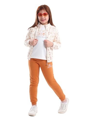 Generic - طقم ملابس بناتي 3 قطع، جاكيت بأزهار وردية مع بنطلون وتيشيرت، من 5 إلى 10 سنوات
