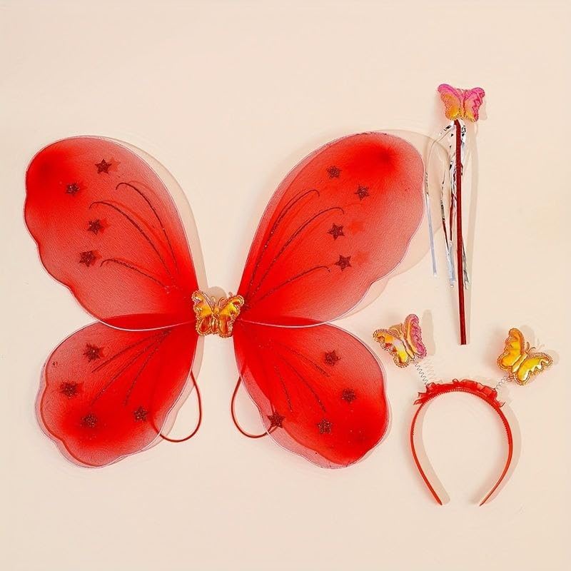 Generic - زي تنكري على شكل جناح ملاك وعصا وطوق للراس للبنات للحفلات، طقم من 3 قطع لون ابيض