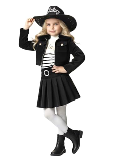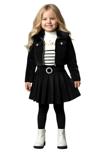 Generic - طقم ملابس للبنات مكون من جاكيت أسود وجيبة بكسر، 3 قطع مع بلوزة بنمط رسمي