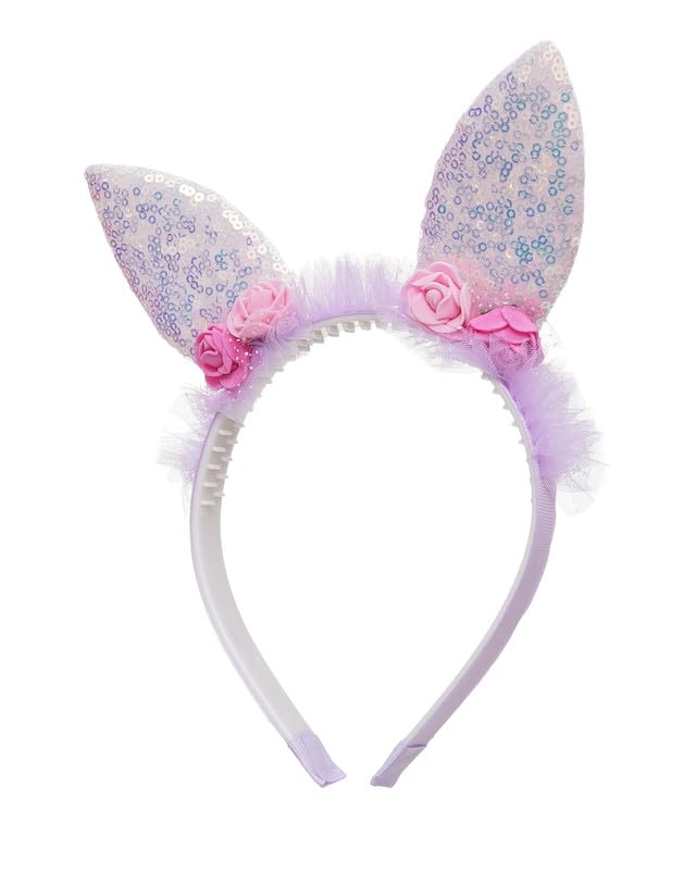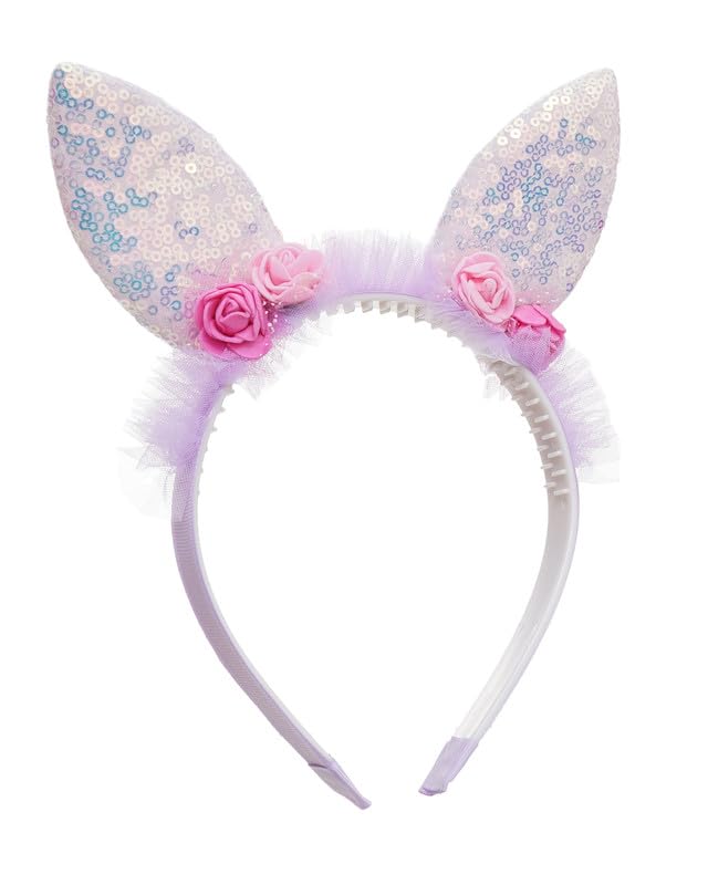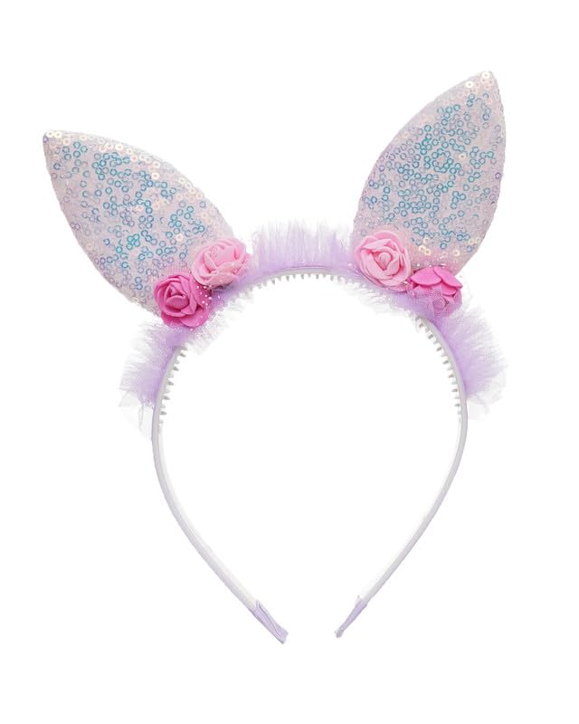 Generic - طوق رأس على شكل أذن أرنب وزهور للبنات، مقاس واحد، لون أرجواني