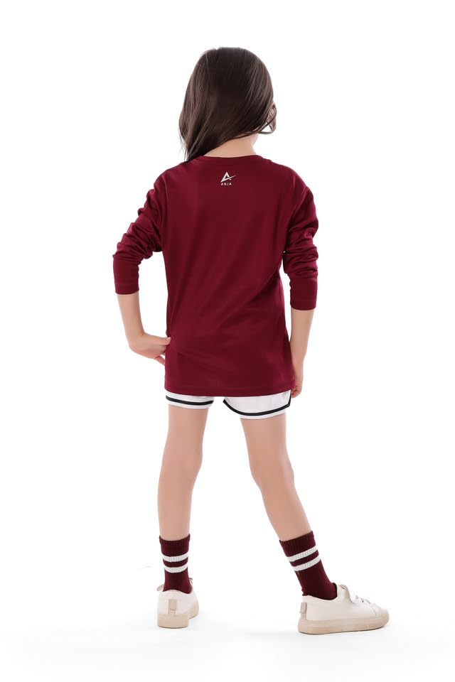 ANJA - تيشرت بأكمام طويلة لكرة السلة للبنات، لون بورجندي - بلوزة رياضية