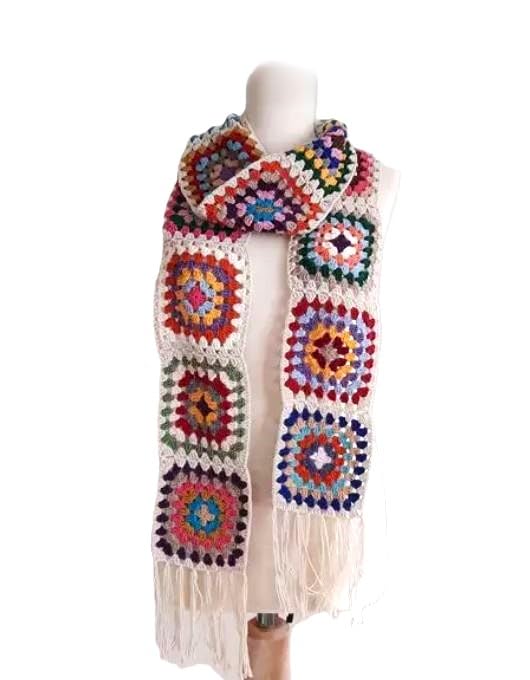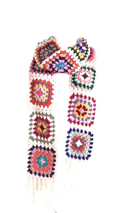 Generic - شال شتوى كروشيه للبنات - خيط ناعم ومرن قطن وصوف - ملون أبيض فى ألوان