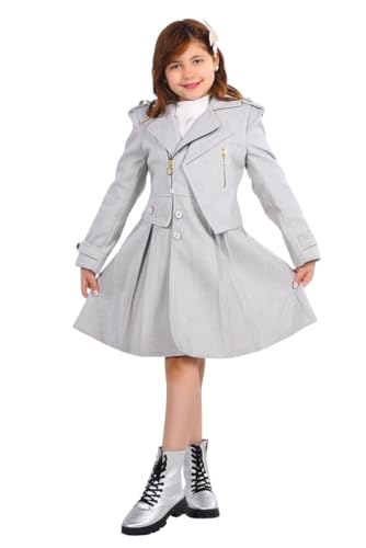 Generic - معطف رسمي للبنات، رمادي، كم طويل، تفاصيل بسحاب، زر امامي، تصميم ملائم وواسع