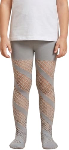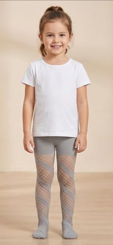 Generic - بنطلون ضيق بنمط شبكة صيد للبنات، رمادي، جوارب باقدام وتصميم شبكي مزخرف لعمر 4 سنوات