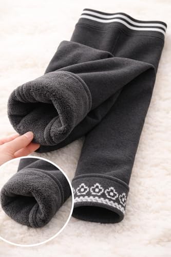 Generic - سروال ضيق مبطن بالصوف للبنات، رمادي مع حاشية بنمط هندسي، حزام خصر مخطط، سروال دافئ للشتاء، مقاس 4-6 سنوات