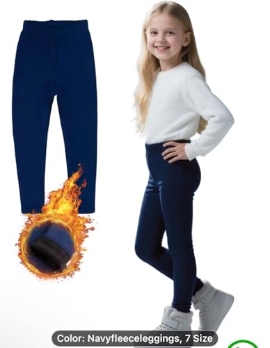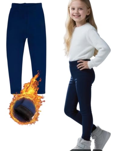 Generic - سروال ضيق مبطن بالصوف للبنات، لون كحلي، سروال حراري للتدفئة في الشتاء، مقاس 4-6 سنوات