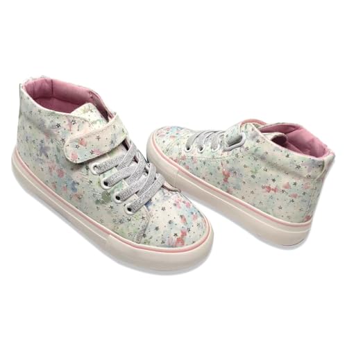 Generic - حذاء رياضي قماشي برقبة عالية مزين بالزهور للبنات، بينك وابيض، حزام حلقي 228