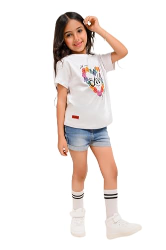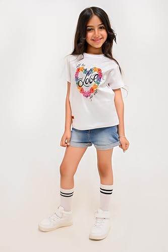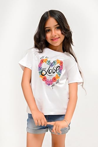 Generic - تي شيرت بناتي مطبوع عليه زهور الحب، باكمام قصيرة، متوفر باللون الابيض والبينك والاسود