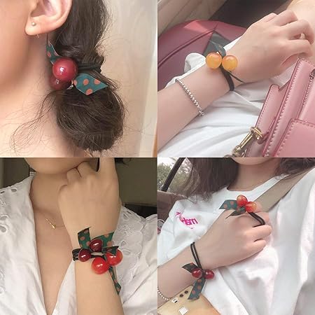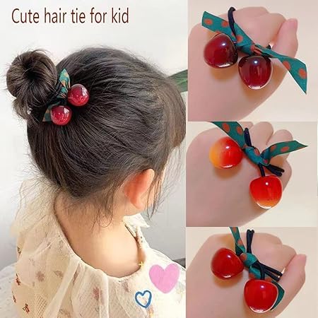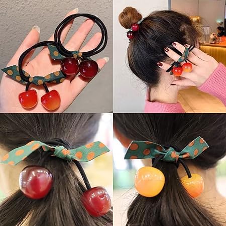 - تصميم جذاب: ربطات شعر مزينة بكرز ملون وشريط أخضر منقط، تضيف لمسة لطيفة ومرحة لتسريحات الشعر اليومية للفتيات