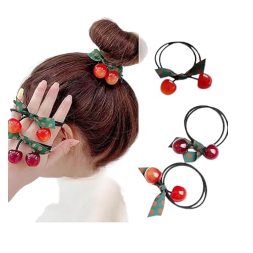 Generic - ربطة شعر للبنات مع زينة كرز، إكسسوار شعر لطيف للأطفال والفتيات الصغيرات، رباط شعر مزين بالكرز 3 في 1