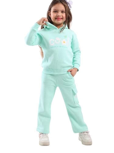 Generic - طقم رياضي للبنات بقلنسوة مع بنطال، تصميم كاجوال مريح، مناسب للأعمار من سنتين إلى 5 سنوات، متوفر بألوان النعناع والوردي