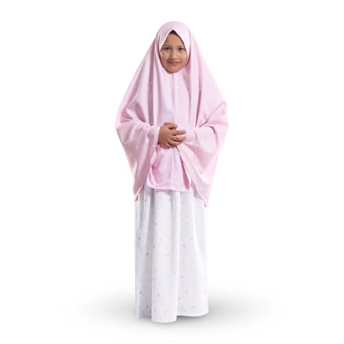 Generic - طقم صلاة اسلامي للبنات، حجاب زهري مع تنورة بيضاء، زي اسلامي من قطعتين، ملابس صلاة للاطفال، 6-9 سنوات
