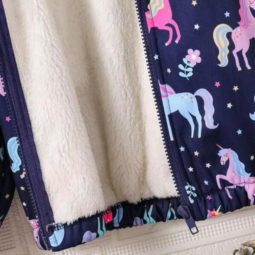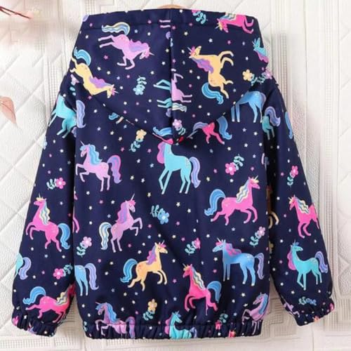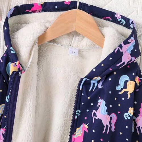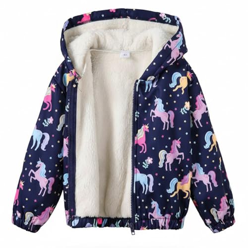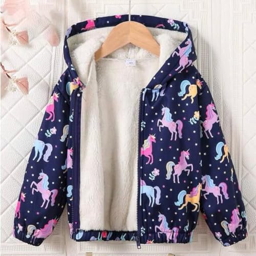 Generic - جاكيت للبنات مع بطانة من الفرو الناعم - تصميم يونيكورن لطيف مع غطاء للرأس - دافئ ومريح للطقس البارد - قصة ضيقة (كحلي)